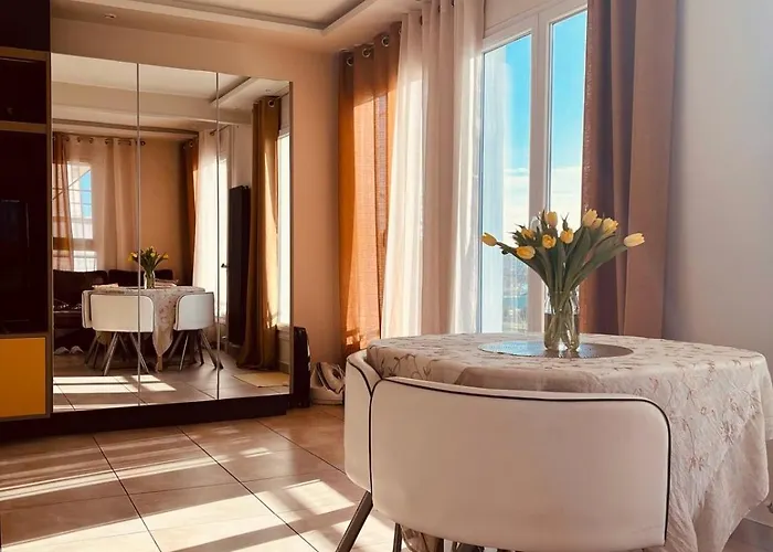 Chez Nata Avec Parking Apartment is furnished with a sofa set featuring modern facilities like a flat-screen TV with satellite channels. Visitors will enjoy the comfort of a bathroom with hairdryers and bath sheets in the accommodation.